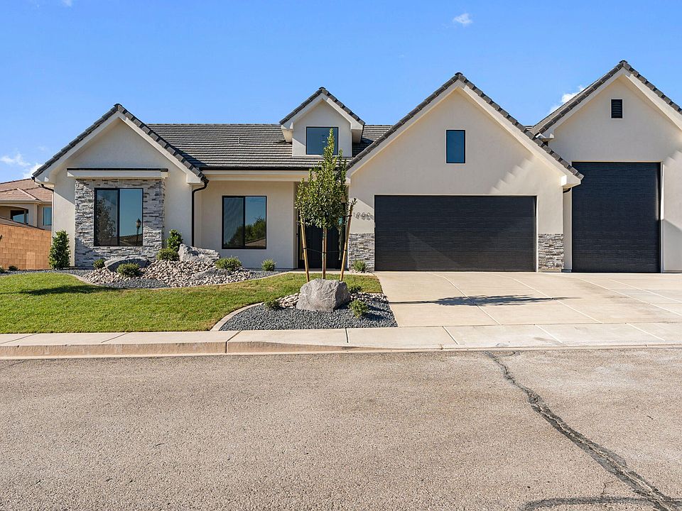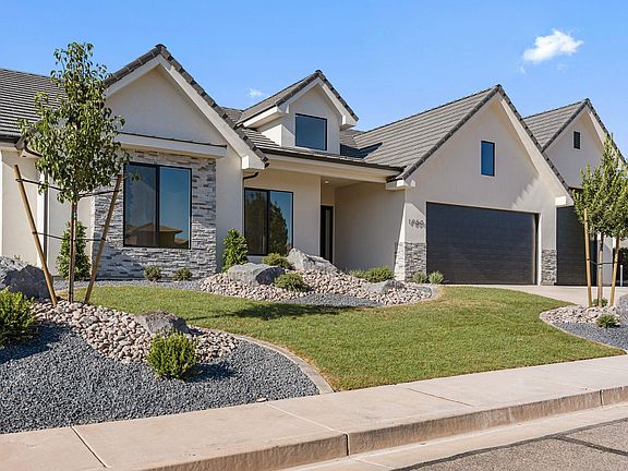 This Stunning State of the Art 4 bed 2 bath luxury, home combines creativity and thoughtful design for comfortable open living, featuring a rock fireplace, fireplace mantle, floating shelves, and a multiple slider door in family rm which seamlessly flows to outdoor living, RV Garage w/electric car plug and storage in the attic above the garage, Upgraded soft close custom cabinets with under cabinet lighting, and under cabinet electrical outlets as well as electrical outlets in pantry. Master bath has a large walk in closet, free standing tub, and a make up vanity! Home is hot tub ready, soft water ready, has natural gas stub for barbecue, holiday lighting ready, USB outlets in all rooms, close to shopping, hiking, biking and all the wonderful things to do in St. George! A MUST SEE!