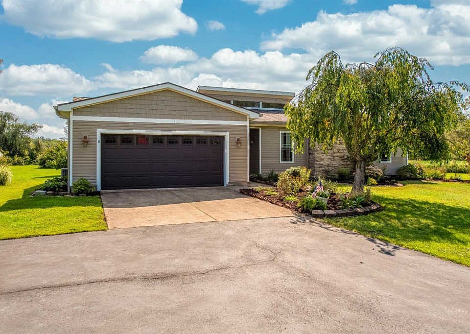 Check out this beautiful home situated on 6.7 acres of land! With vaulted ceilings and natural light coming in the living room, this home feels so spacious. Enjoy parking your car in the attached garage and using the detached garage for your workshop! Seller has redone siding, gutters, and insulation in attic & removed most of the popcorn ceilings!