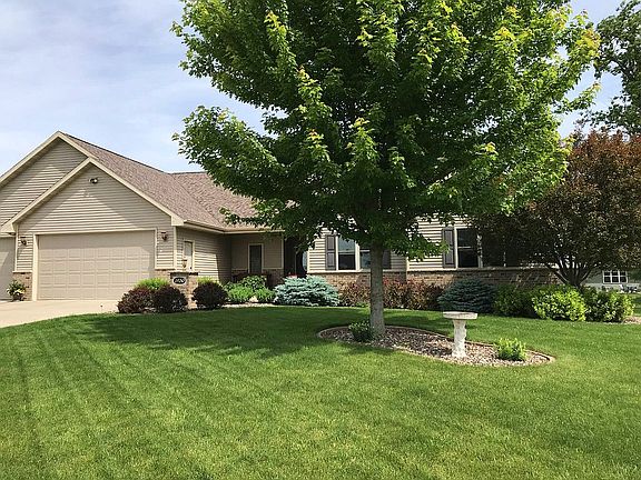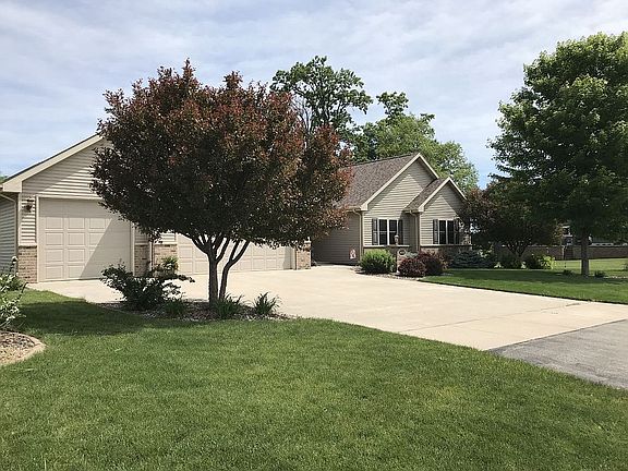PLEASE NOTE: If you are interested in this home, please DO NOT click on the "Contact Agent" button above. That button will send your information to a realtor that is not associated with the sale of this house. Please contact the owner directly. Now this is a house you can call "home", and it's a "must see to appreciate" house. Have you ever wanted your own workshop area, but there was just not enough room in the garage? Well, look no further than this 2400 square foot ranch home, with 1750 square feet on the main floor and 650 square feet of finished basement, located in a newly developed and continually growing area of Kaukauna with a desirable location near the High School and minutes from shopping. This home includes an attached 700 square-foot, insulated, and heated workshop space with full electrical including its own service panel. This workshop could alternatively be used for extra storage for your outdoor toys - keeping ample room open in your 3-stall garage. The interior of this 3-bedroom, 2.5 bath home has 9 foot ceilings and is beautifully designed with custom cherry cabinetry including built-ins, wood-trimmed trey ceilings in the Great Room and Master Suite, solid 2-panel doors and substantial wood trim through the home, 3/4 inch solid Acacia (Asian walnut) hardwood flooring in kitchen, dining, and foyer, and a beautifully crafted bar in the lower level. Perfect for entertaining friends and family, the lower level also includes a bar refrigerator, half-bath, area for a pool table, family room with ample seating area, and 42 inch windows that bring inviting light from the back yard. Other noteworthy features included are electric glass top stove, kitchen refrigerator, dishwasher, available gas hook-up for a future gas stove, soft-close cabinet doors and drawers, full ceramic tile backsplash in kitchen, battery powered back-up sump pump, additional garage access to the lower level, radon mitigation system, spacious main floor laundry room with sink, 10 feet of hanging pole and an 8 foot folding table, master suite walk-in closet, no-step (flush) entry in garage and front porch, and large open design in main floor living area framed by arched entries. The exterior of the home features new concrete street, sidewalk, and apron, a beautifully landscaped yard with mature trees, paved edging, and a 16 X 16, maintenance-free Trex Transcend deck off the back of the dining room. The house is sided with brick and vinyl and has a lovely brick, lighted address pillar lighting the path to your no-step entry. The lot dimensions are 92 ft wide by 130 ft deep. *** Difference in Zestimate is likely due to the finished basement and workshop not being counted toward the home value.