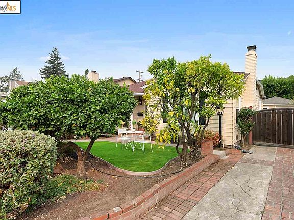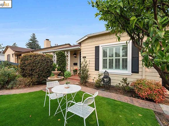 Charming & elegant, this home is perfectly located in the desired Brittan Acres neighborhood. Enter the welcoming front garden w/ citrus trees, sparkling fountain, & sweet front porch. Front living space has custom shutters, fireplace, & gleaming random plank oak floors. Hardwood floors throughout most of the home incl formal dining & bedrooms. The spacious updated kitchen has quartz countertops, updated appliances, & convenient adjacent laundry room/pantry. Two bedrooms & brand-new chic bathroom down one hallway, & third bedroom & one more half bath in rear of the home offer endless primary suite possibilities. Rear family room has large windows looking out to serene garden w/ fruit trees. Top it all off w/ detached garage, adjoining bonus room plus two updated patios! This home has both old-world charm & current updates w/ high-quality roof, owned solar, updated bathroom & kitchen, double-paned windows. Located just a block to popular Burton Park, & 0.7 miles to downtown San Carlos.