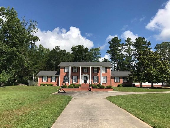2 story, 4 bedroom, 3 full bathrooms, powder room/half bath, versatile room for entertainment or office, formal living room, formal dining room, den with breakfast area connected to kitchen (open floor plan), granite countertops, laundry room, two story foyer, formal stairway with open balcony hallway, central heat and air, central vacuuming, gas fireplace insert, electric range, and electric water heater. 2 car garage, storage in garage, covered back porch, covered front porch, open porch in back. Storm shelter, custom children's play/swing set, game room with one car garage on side and storage/garage on back, RV shed/shop. Sitting on beautiful 5 +/- acres of mostly flat grass.