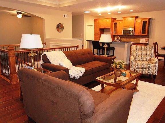 Exceptional not optional! All the extras are included in the price. 10' foyer ceiling, open floor plan, 3/4 inch hickory flooring, enclosed rear porch & more. Kitchen feature granite countertops, raised brkfst bar and walk-in pantry. Additional countertop has bar/prep sink and a beverage refrigerator. Master suite is a private hideaway at the rear of the home with an additional bedroom wing at the front. Basement is finished with additional bed & bath plus a large family living area.