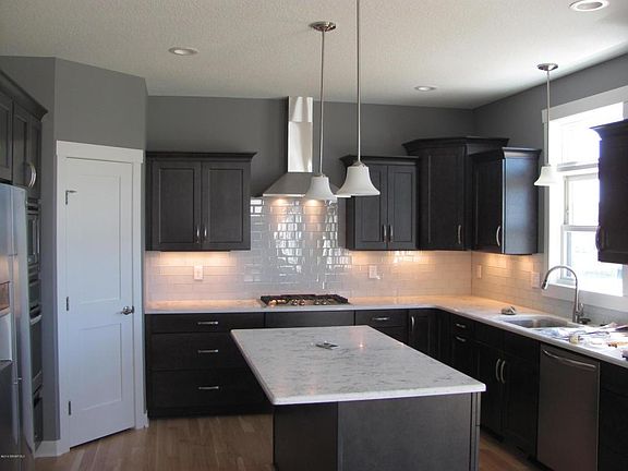This home has a nice open floor plan, office with French doors. Kitchen has a corner pantry, large island, maple cabinets, granite tops and hickory hardwood floors. Upstairs master suite with trayed ceiling includes private bath with double vanity, tiled shower, air tub and spacious walk-in closet. Three more bedrooms and a full bath complete the upper level. All on a walk-out lot.