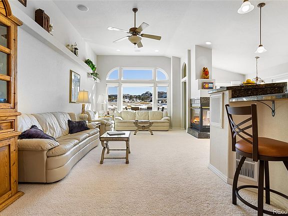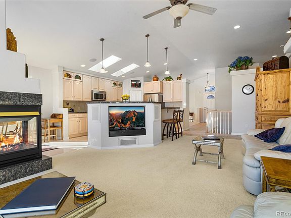 This is it, your new home. Sunny and bright home on the 18th fairway at Plum Creek Golf Club. The open floor plan features natural light from skylights and large windows. The kitchen has generous storage spaces, with tall cabinets including a pantry. All stainless steel kitchen appliances are included. * A toasty glow radiates from the 3-sided fireplace in the living room, which comes with a remote. Rest assured that this home has high efficient windows to keep you warm. Ceiling speakers and a television alcove provide a highly immersive entertainment experience. The back deck runs the width of the home facing east and was remodeled with composite materials in 2020. A convenient gas hook-up and water spigot provide what you need for grilling and gardening. * Primary bedroom has a cozy fireplace and a walk-out to the back deck. One bedroom was built to modern standards with oversized egress windows in the basement, all fully permitted. * Enjoy the downstairs entertainment room accompanied by a full bath nicely adorned and tucked away from the upper level. * You'll be under two miles from I-25, the Outlets at Castle Rock, and excellent dining. The Plum Creek Golf Club offers tee times for members and the public.
