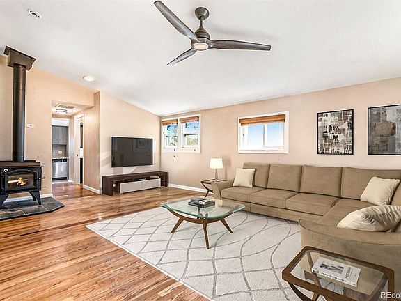 AWESOME Open and bright home on oversized lot in the highly sought after community of Edgewater in the heart of Denver. This home is a perfect fit for someone looking for great outdoor space and a workshop/garage. Pride of ownership is very evident! As you walk onto the property you'll immediately notice the rare .23 acre oversized lot. Upon entering, you’re welcomed into an inviting living space with stunning hardwood floors, a built-in bookshelf, angled ceilings, and abundant natural light filtered by new custom blinds. The new wood-burning stove adds ample charm and cuts utility costs. The kitchen boasts custom cherry oak cabinetry and a subway tile backsplash, complimented by stainless steel appliances and access to the rear patio. Three inviting bedrooms feature engineered floors to compliment the original hardwoods throughout the rest of the home. MUST SEE OVER-SIZED GARAGE ON A HUGE LOT! The oversized garage is perfect for a hobbyist, craftsman, or car enthusiast and has been fully finished including its own furnace and heating system (2019), upgraded electrical panel (2019), and the addition of additional 240v power. You will also enjoy easy walking access to sloans lake, numerous parks and the great Edgewater restaurants and shopping! Additional features include: new roof (2019), new exterior paint (2020), new furnace in the main home and garage (2019), addition of AC (2020), Newer landscaping. This is a very rare opportunity to own a live/work/property on an over-sized lot less than a mile from Sloan's Lake!