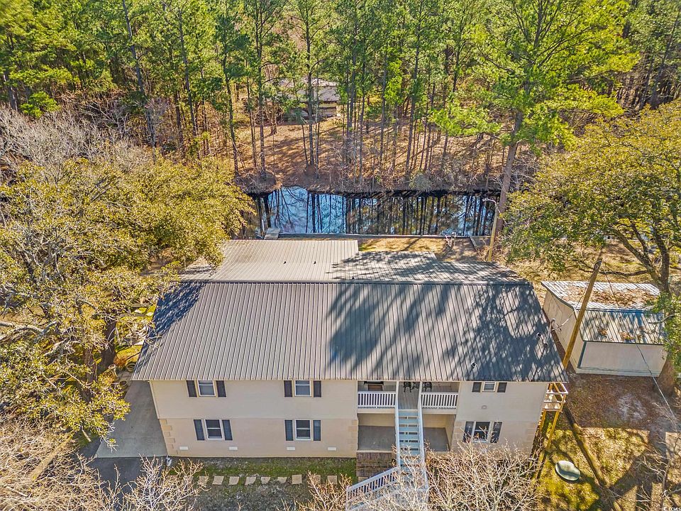 This home is the perfect get away.  This charming home includes hardwood flooring,remodeled kitchen with solid surface counter tops, dining area and living area wit large primary suite  with view and raised deck to sit and enjoy the calm and serene water views and lots of nature while drinking your morning coffee.  If your looking for that perfect home get away or full time living with peace and quiet and NO HOA this is the one.  Large trees , detached 2 car garage and private entrance to put your boat in that leads to the waccamaw river for a full day of relaxing on the river or doing a little fishing.  Bring your boat of course, your RV or your motorcycle.  Sitting just off of Hwy 90 area of beautiful historical Conway (with lots of dining and shopping options) and easy access to all area beaches.