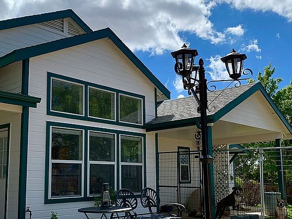 - Exterior Features: Fence - Backyard, Landscaping-Front, Patio - Covered, Storm Gutters, Driveway-Gravel, Level Entry, Workshop, Driveway-Concrete, Screens/Sun Screens, Sprinkler/Drip, Fence - Privacy, Satellite Dish