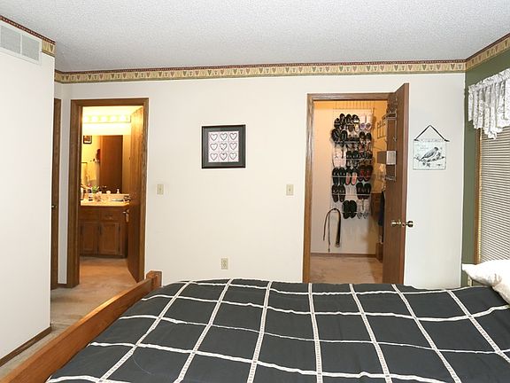 Open ranch plan located in the Maize school district. Located on a large corner lot in a quiet cul-de-sac. The school bus comes right to the door for your school kids safety. Fresh paint and ready for a quick close, this home features a total of 3 bedrooms and 2 baths. Storage room in the basement had no egress. Exterior of the home includes privacy fenced yard with two double gates for the times you would need to get to back yard with ridding mower or trailer. An 8’ ft x 12 ft storage building is lactated in the rear of back yard. A 12 ft x 18 ft wood deck is located at rear sliding door. The home has a fireplace in the living room which is FOR DECORATION ONLY AT THIS TIME WITH NO FLUE TO VENT OUT. An electric fireplace/heater currently occupies the space. The home has an upgraded Anderson sliding door system with extra security features to lock it in an open position allowing fresh air in the home on those nice spring or fall days. A small, illuminated pet door is installed next to the sliding doors and leads directly onto the deck.