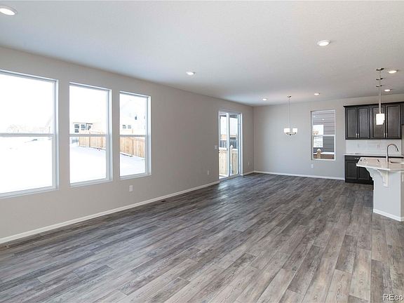 Step into The Sparkle and enjoy plentiful design features throughout this gorgeous home! With 3 bedrooms, flex room, loft. The open spacious great room is great for entertaining adjacent the incredible kitchen, with hugh island, while utilizing the quartz countertops, upgraded stainless steel appliances. Enjoy the luxurious master suite with a beautiful tile in large shower and an extra-large walk-in closet! All of these features plus, upgraded flooring, Nice mountain views off the front porch. Located minutes - walking distance to Prairie Center shopping district.