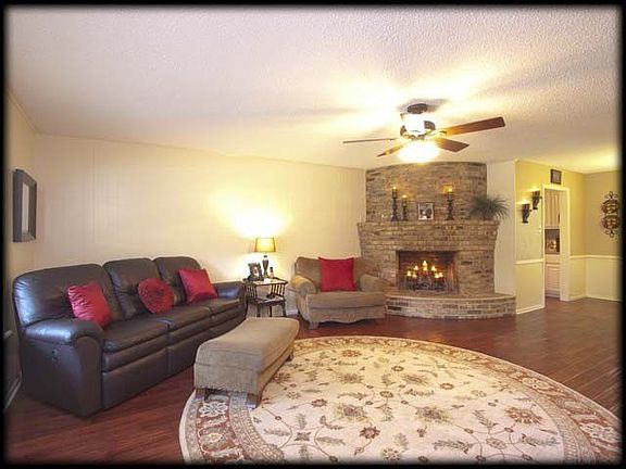Updated Home with Tyler Address, Whitehouse Schools. Small suburban lots make you feel a little cramped? Mature trees offer summertime shade for the family out enjoying the half acre yard with privacy fencing. Pretty hand-scraped hardwood floors were added to the open living and dining areas. Corner fireplace has beautifully curved brick hearth & mantle, gas start for wood-burning fires next fall & winter. Bronze chandelier accents the dining area. The kitchen was gutted and new custom cabinets, granite-look Formica counters & backsplash, stainless appliances and track lighting were added in the galley style kitchen. Laundry room has folding counter & storage cabinets. Hall guest bath serves the 2 guest bedrooms. Large Master Bedroom has walk-in closet, room for desk or sitting area and adjoining private bath with shower. New Grande extension is 2 blocks away, which affords easy drive to shopping in Tyler or highly desirable Whitehouse schools.