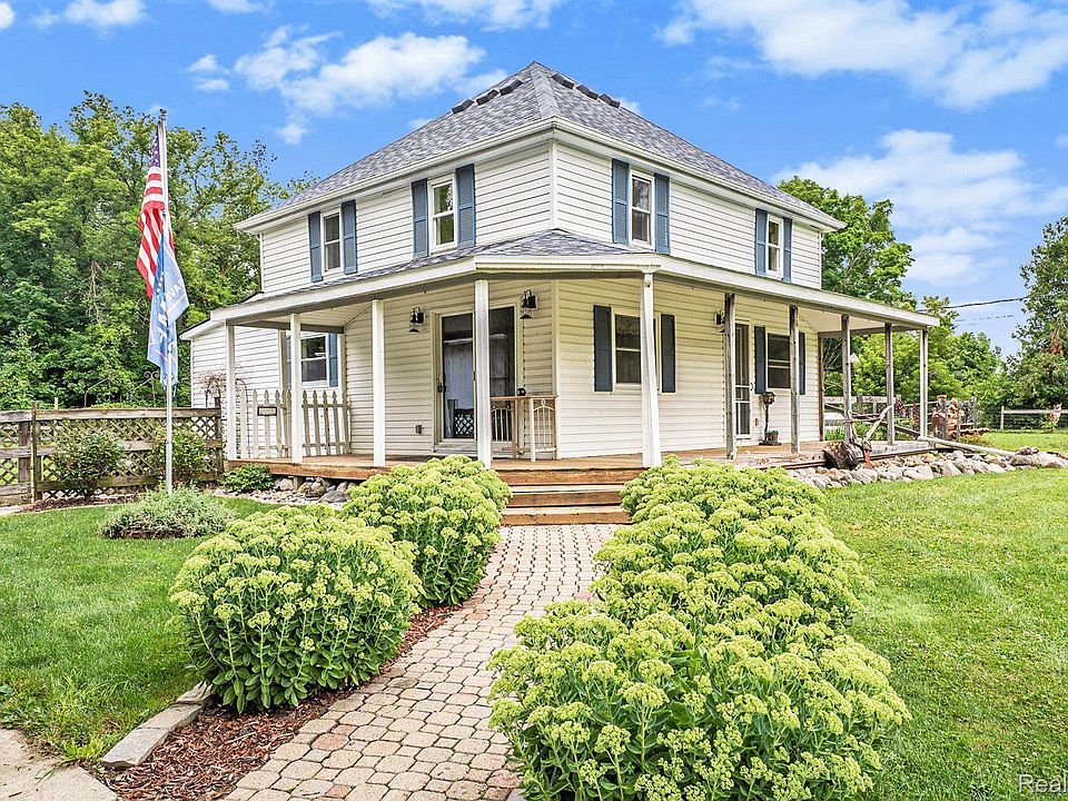 Welcome to this charming country farmhouse that is nestled on 1.8 acres offering a serene retreat from the hustle and bustle of everyday life while still conveniently located near local amenities. You will also enjoy relaxing on the wrap around covered porch every chance you get. The main level has hardwood floors and an open layout that offers a wonderful flow from room to room making it ideal for both everyday life and entertaining. The 30 x 40 garage w/oversized doors can accommodate your vehicles and outdoor equipment. Use your creativity to utilize the hobby barn however you wish. Updates include furnace, water softener, dryer, fridge and HWH 2022, roof on house 2021, remodeled bath and new deck/porch 2017. Many other updates have been completed throughout the years including the kitchen, electrical, windows w/transferrable warranty and more. Don't miss the chance to own a slice of country paradise!!