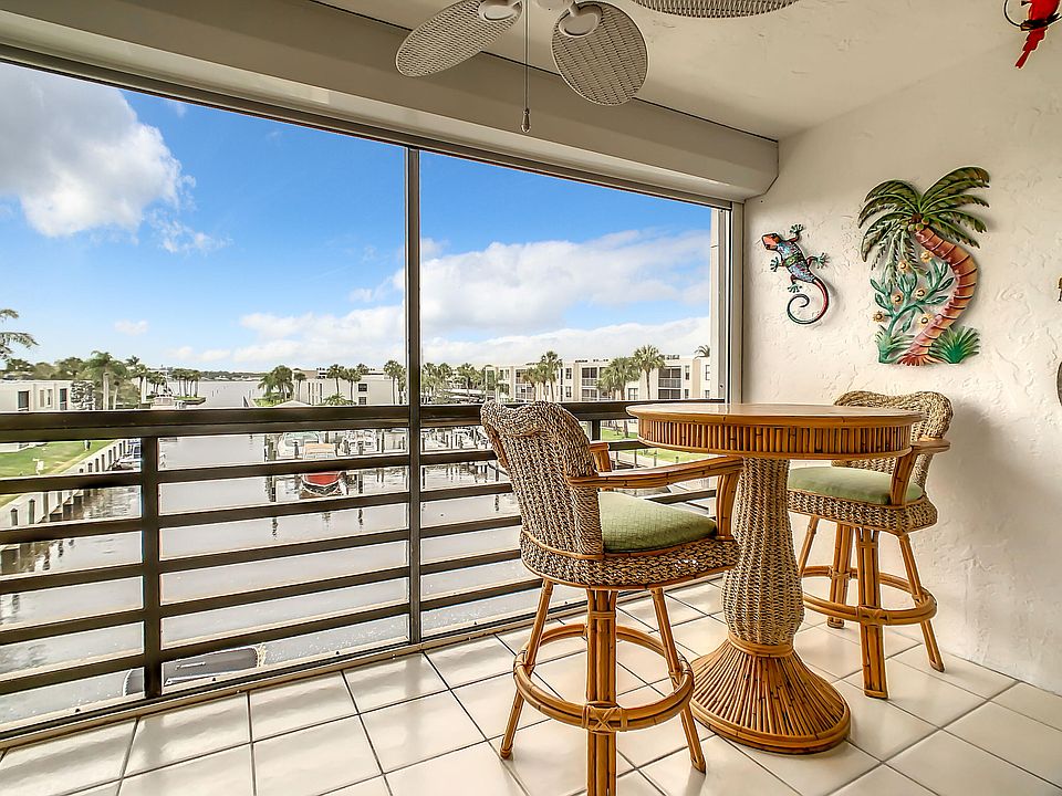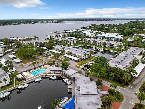 Circle Bay 3rd floor (elevator building) wide river & marina views await you! Fully Furnished 2 bedroom 2 bath spacious condo with large screened lanai for views and a glass of wine to enjoy the sunsets. The community has so much to offer, from boating (Dockage rental is available for $1.50 per ft per month for boats up to 36ft), swimming, soaking in the hot tub, bocce ball, shuffleboard, grilling, to just relaxing & enjoying the views. Walk, bike or cruise by boat to restaurants, shopping and charming downtown Stuart! Located just minutes from downtown & beaches.