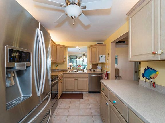 WONDERFUL FULLY FURNISHED END UNIT WITH UPDATED KITCHEN AND BATHS. PLANTATION SHUTTERS AND STORM SHUTTERS.NEW TILE AND ENTREE WAY. NEW STORM SECURITY DOOR. ONLY TEN STEPS TO FRONT DOOR FROM PARKING! QUIET UNIT AWAY FROM STREET. END UNIT GETS EXTRA LIGHT FROM SIDE WINDOWS. WATERFRONT VIEW OF THE RIVER. BOAT DOCKS AVAILABLE.
