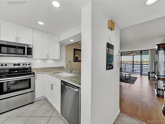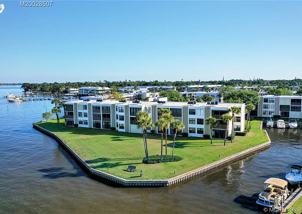 Spectacular million $ wide river views from this great 2 BR riverfront condo with DOCKAGE for your boat & OCEAN ACCESS! Enjoy magnificent sunsets & picturesque boats sailing by. Beautifully updated kitchen with custom white cabinets, quartz countertops & stainless steel appliances, laminate flooring, new HWH, 2016 AC, & accordion hurricane shutters are just some of the special features. All buildings have new roofs, new carports, new paint, new walk-ways, new seawalls & No Assessments! Beautiful & very active riverfront boating community with resort style amenities including clubhouse, covered picnic deck with outdoor kitchen & professional grills, heated pool, hot tub, saunas, showers, boardwalk, bocce, shuffleboard & so much more! Dockage available for $1.50ft./mo for boats up to 36ft. BOATER'S PARADISE! (55+ community, no pets, no trucks, no motorcycles, no rentals first year) No showings until OPEN HOUSE: Saturday 3/27/21 1-3pm & Sun 3/28/21 1-3pm. Offers considered 3/29/21.