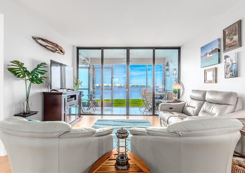 Remodeled gorgeous 2/2 First Floor Waterfront condo with stunning wide water views. Enjoy the cool breeze and beautiful sunsets! Washer & dryer in unit, extra storage and walk-in closets. Covered parking. Active 55+ neighborhood with amenities including boating/dockage for boats up to 36ft for $1.50/ft per month, boardwalk, marina, fish cleaning stations, community pool, hot tub, sauna, clubhouse, covered dining deck, outdoor kitchen, gas grills, bocce, shuffleboard & a workshop! Close to shopping & dining in downtown Stuart. (No pets, no trucks, no motorcycles, no rental first year, 55+)