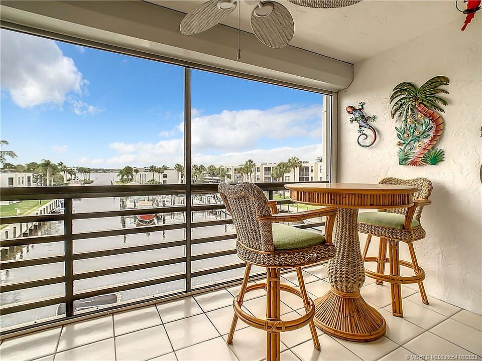 WHAT A VIEW!!! 3rd floor unit (Elevator in bldg) with gorgeous marina and wide river views. Bring your boat! Dockage rental available for $1.50 per ft per mo up to 36ft. No fixed bridges and ocean access. 2 BR, 2 full BA spacious condo with screened lanai to enjoy the sunsets. Full size washer and dryer in unit. Circle Bay is an active 55+ community with lots to offer including Community pool, Hot tub, bocce ball, shuffleboard and many more activities. Walk, bike or cruise by boat to downtown Stuart for the best restaurants and shopping. Treasure Coast beaches are a quick drive as well! Sold Fully Furnished. Great investment property, units rent seasonally at an average of $3,500 per mo. Come take a look...you won't want to leave!