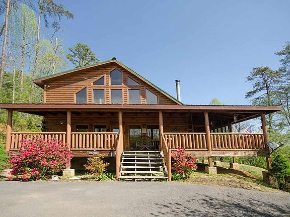 Gorgeous 3 BR 3 BA Log style home in a private setting with wonderful Mountain Views!!! Excellent location between Gatlinburg and Pigeon Forge. Only minutes to Dollywood and all major attractions. This Custom Built Log home has lots of great details in its construction. Wood floors, knotty pine walls, spacious bedrooms, ornate fixtures, carved mantle and stairwell plus lots of great closets for storage make this Cabin very special. Two bedrooms and two baths on the main level. Lots of windows in the loft area. The upper level has an additional bedroom, bath and extra bonus room. Sit out on the fabulous covered, wrap around, partially screened porch and enjoy the Mountain Views and peacefulness of this serene wooded setting. Perfect for permanent residence, 2nd home or overnight rental!!