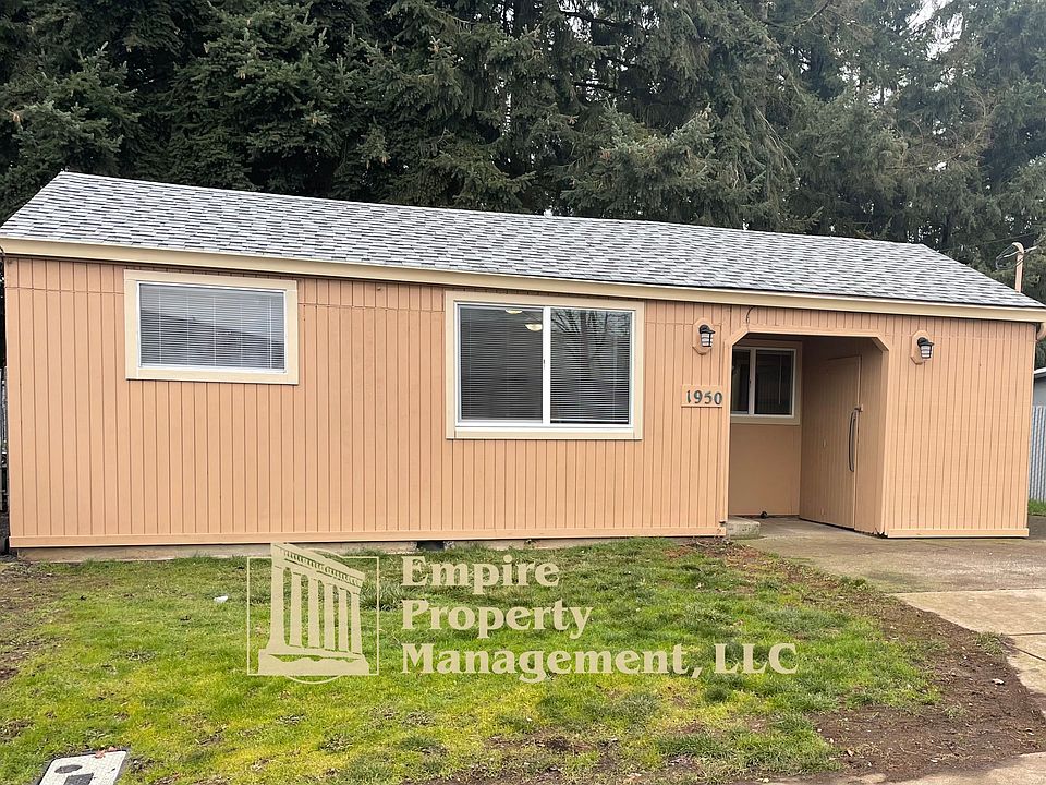 Cozy two bedroom one bath single family studio located in the west Eugene area. Freshly painted. New light fixtures. New windows and new blinds. All new carpet. Fenced yard. Close to restaurant's, shopping and school's.