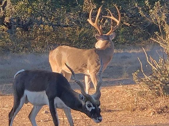 This incredible 335 acre exotic game ranch is move in ready and perfect for a family escape or wildlife enthusiast. It is located in the heart of live oak country, south of Menard and just off Hwy. 83. This high fence ranch has two homes, a strong well, stock tanks, and an extensive watering system for the wildlife. The acreage has rolling terrain with consistent live oak and shin oak cover, along with scattered mesquite trees. There is ample cover for wildlife and much of the cedar and cactus has been eradicated. Many of the live oak trees are large majestic trees with a park like atmosphere around the homes. The game ranch includes Black Buck Antelope, Axis, Fallow, and Oryx as well as trophy white tail deer. There are two homes on this property. The primary residence is a 3/2, plus an enclosed porch set up as a bunk room. The front porch of this home overlooks a beautiful rolling pasture where you can see oryx, fallow, blackbuck, axis and awesome whitetail frolicking. This home, with 2,600 sq. ft. of living area includes a large living room with vaulted ceiling and fireplace, modern kitchen with an adjacent dining area, and CH/CA. The master bath includes an oversize walk-The second home is a large, modern Palm Harbor home with 3,100 sq. ft. of living area. This home is a 4/3 with a split floor plan. Features include a large living room with corner fireplace, kitchen with large island, a formal dining room, a TV room, and a study. There are two metal barns both with electrical and insulation.