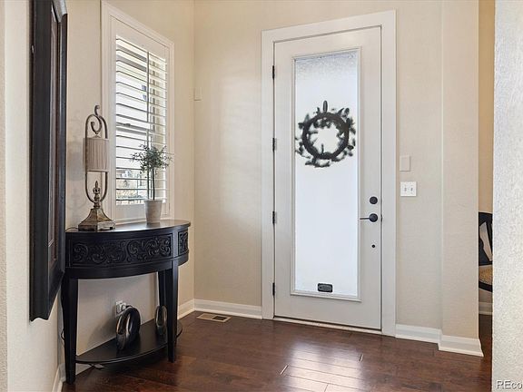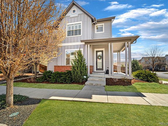 This stunning modern home, coveted David Weekley Azure model, offers a prime location on a corner lot adjacent to a 2-acre park with/ mountain views. A welcoming wrap-around front porch features a freshly painted front door with/ new lock & hardware to enhance the curb appeal. Inside, you'll find plantation shutters, new hardware, faucets, & updated lighting throughout. Elegant hardwoods adorn the main floor, while a stylish iron spindle staircase adds to the home’s timeless charm. Sunlight pours through the southwest-facing sliding doors, filling the home with/ warmth & natural light. This turnkey home has been meticulously maintained, with/ freshly painted baseboards & ceilings. The kitchen features a gleaming porcelain farmhouse sink, upgraded cabinetry, a spacious walk-in pantry, a wine fridge, stainless-steel appliances, and a large island, elevating cooking to an art form. Upstairs, the serene primary suite offers a spacious en-suite bath & a private dressing room-style walk-in closet. The second bedroom boasts stunning mountain views & features a full bath just one door away. Enjoy the open loft as a space to unwind or convert into a third bedroom if desired. The convenient upstairs laundry room makes daily living even easier. Step outside to a private, oversized backyard deck—ideal for al fresco dining, relaxing, or entertaining—with/ a newly stained fence enclosing flowering trees & garden beds ready for your spring planting. Built in 2014, this Energy Star-certified home is equipped with/ modern smart features, including a radon mitigation system & a tankless water heater, delivering peace of mind. Situated near local parks, top-rated Trailside Elementary School, and the Clear Creek bike trail. Easy access to Downtown Denver, Boulder, & DIA! **FREE LENDER CREDIT UP TO $14,598 FOR RATE BUYDOWN WITH PREFERRED LENDER ** INQUIRE WITH LISTING AGENT.