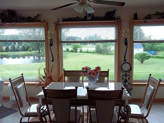 1992 Schultz manufactured home on just over 10 acres with a pond; 3 bedrooms; 2 baths; wonderful sunporch; and 24 x 32 detached garage.