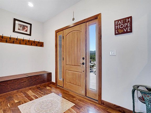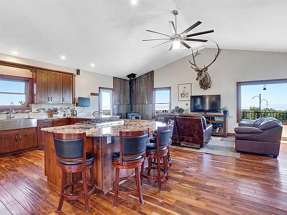 Over the top Custom Built Home...they thought of everything here. Your own private oasis tucked away-spectacular views-on a clear day you can see Utah to Elk Mountains. Perfect mother in-law set up in the basement with it's own full kitchenette and spacious living space-1488SqFt. 50x60 metal shop with 240V-electric & water along with your oversized detached 3 car garage. Kitchen is a chefs dream-huge-open with a large island for entertaining around and its open to the living room and formal dining room. Cabinets are a knotty alder top of the line-soft close and plenty of pull outs. Gorgeous Acacia engineered hardwood floors throughout and tile. Solid granite counter tops throughout the home; marble and stone back splashes. Solid knotty alder doors and trip throughout the home. You are going to love the utility room, has its own doggy shower; pet door. Wowza, the master suite-open-bright-