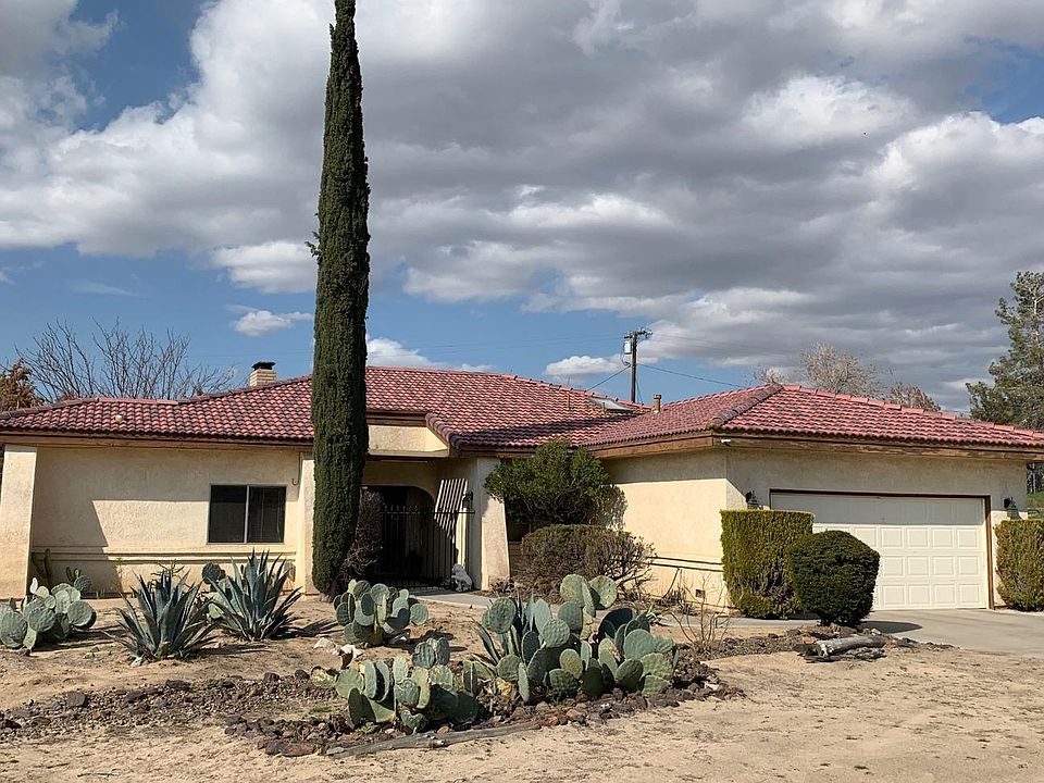 Nice Apple Valley house in the Desert Knolls area. This is a large, open home in a very desirable neighborhood of Desert Knolls, Apple Valley. A great home for entertaining and raising a family, or anyone looking for a quiet, peaceful neighborhood. The home features include three spacious bedrooms and two newly-tiled bathrooms, plus a large den area, dining room and more. It includes ten foot high ceilings with ceiling fans, wide archways and a broad tiled hallway. Large picture windows let in lots of light throughout the home and there is a lovely pass-through fireplace in the living area. New granite countertops and sink area in the step-saver kitchen including room for a dinette. Nice, wind-protected patio in the back. Great accommodations for RV's and toy haulers in the large, fenced lot with two drive-thru gates. Mature, desert friendly landscaping with many trees for shade. Rio Vista elementary school! Heavy-duty 4x6 construction, boxed-in eaves and a real tile roof - they don't build them like this anymore! This home is a great bargain in an excellent neighborhood!