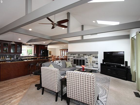 Curb appeal on the outside, wow factor on the inside! This single story ranch has been extensively remodeled to an open concept living space featuring exposed beams, skylights, vlted ceilings, huge new kitchen with 12 ft island, butcher block and SS countrs, raised eating bar. Also new within last 7 years-roof, HVAC, driveway, windows, doors, flooring, paint, landscape. .25 acre lot in quiet Aloha area near Intel. Seller is lic Realtor.