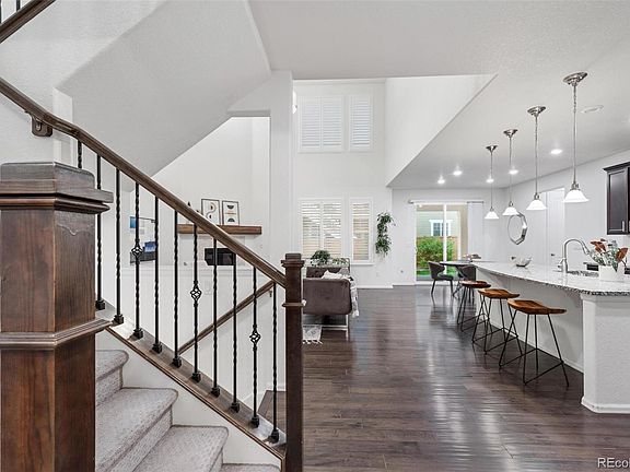 Welcome home to Golden! This like-new home is situated just minutes to Downtown Golden, and an easy drive over to Boulder + Denver. Enjoy the ultimate Colorado lifestyle near trails and parks without compromising on space or style. Inside the front door, you’re met with two stories of windows with plantation shutters, cathedral ceilings, and a grand staircase giving this home a sense of light and grandeur. Start your day in the great room, cozied up next to the stone tiled fireplace, watching the light stream in through the oversized windows. Have the neighbors over for weekend brunch and gather around your light + bright dining space while you whip up breakfast in the open kitchen, featuring a large island and pantry. The newly finished basement features high end finishes with a gorgeous entertainment space for movie or game nights, built-in desks for homework, projects or an additional home office, another full bathroom and two storage areas with plenty of space to add another guest room if needed. Upstairs, find respite in a generously proportioned primary suite plus with three additional bedrooms. This 2017 home has been impeccably cared for and upgraded, including a 2022 roof and solar panels, 4 car garage, and entry/mud room. Your main floor office overlooking the porch is perfect to work-from-home, as a den, or convert to a guest room adjacent to the full guest bathroom. Ready to head out on your next adventure? This home is nestled between North Table Mountain, Long Lake Park & White Ranch Open Space - the perfect place to hike, bike, and stroll. Your new neighborhood has a park, playground, nature trails, soccer field, and volleyball courts. End the day on your covered patio with plenty of room for al fresco dining, s’mores around the fire pit and lovely maturing landscaping all around the yard. You’re going to LOVE living here!