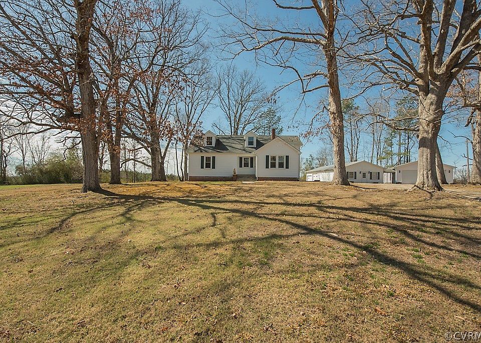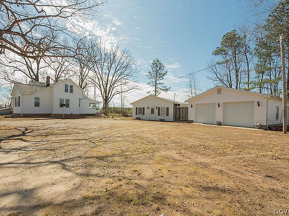 If you're looking for a well kept 1940's era Cape Cod on 8+ acres with lots of majestic oak trees, 26 x 38 detached 3 car garage, 24 x 60 shop/storage/office and a 20 x 52 barn/equipment shed with a 22 x 38 lean to shed, check this one out. There are lots of possibilities with these buildings.The extra large primary suite is on the first floor and has one WIC in the bedroom and another in the Primary bath. There is a living room, dining room, HUGE family room/den and kitchen also on the first floor. There are 2 bedrooms upstairs and a full bath. The oil boiler is still in working order if you choose to use it during cold weather and there is a brand new 2 zone heat pump. There is open land that could be used for pasture, fruit trees or vegetable production. The roof and vinyl siding on the home are approx. 5 years old. The windows other than the back porch a 2nd floor landing are vinyl replacement windows. There is a gasoline powered generator in the storage shed that will run the lights, well pump and oil furnace. This property is 20 minutes from Fort Pickett, 30 minutes from Colonial Heights and 50 minutes from Richmond.