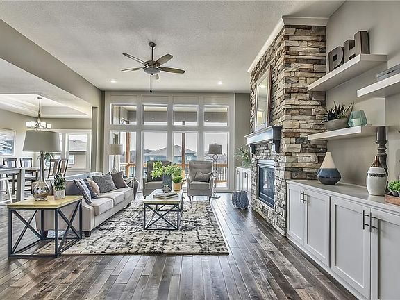 Prieb's all new Payton Rev 1.5 plan features great room with floor to ceiling stone fireplace and hardwood floors. Light & bright kitchen boosts large island with apron front sink. Recirculating stove hood, built in microwave, soft close drawers & doors and painted kitchen cabinets. Three bedrooms on the main level, and one in the finished walkout lower level. In the lower level you'll also find a family room, 3rd full bath, and walk up wet bar! Covered 17x8 deck and large walk out lot. Photos are of a previously completed spec. Home will be ready for occupancy early 2023.