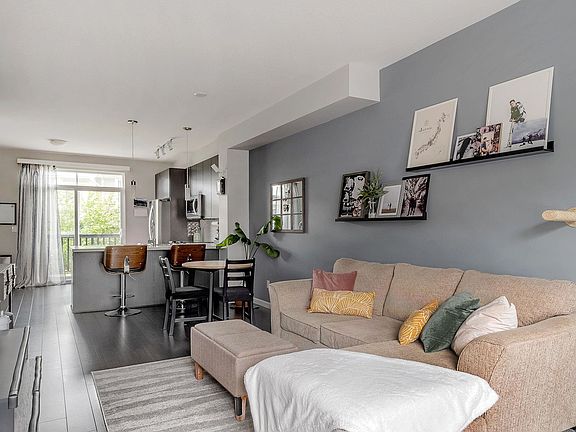 Charming 2 Bed/2 Bath Townhome located in the nature inspired community of Clayton Heights. Built by Award Winning Townline. Main floor features laminate flooring, 9 ft ceilings & oversized windows throughout. Ample sized kitchen and a bonus patio directly off kitchen w/ additional wall providing extra privacy - great for entertainment! Generous master w/ ensuite and double sinks. 2nd bedroom is equally substantial, and both rooms have wall to wall closets. South facing yard backing onto green space. Tandem garage. Affordable strata fees cover access to Outdoor Pool, BBQ area, Fitness Center, Billiards Room, Movie Theatre, Floor Hockey Rink at The Grove! Short walk to Katzie Elementary, trails. 5 mins drive to Willowbrook Mall, Costco, T&T, etc! Rentals/Pets allowed.