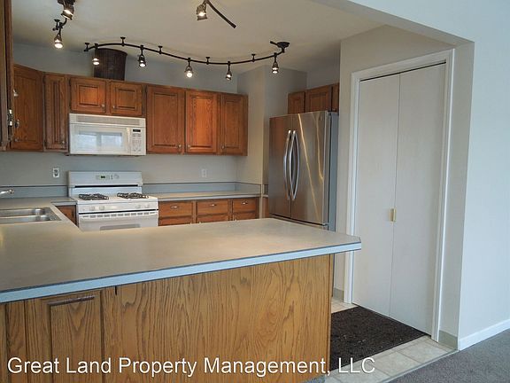 3 BR w/fireplace and fenced yard! - Great Family home in Eaglewood. 3 bedrooms all upstairs. Master has his and her closets and a full master bathroom. Newer paint and carpet throughout in Spring 2019. Track lighting in the kitchen. Prow front home with AWESOME mountain views from the windows in the living room and the 3 tiered deck off the dining area that leads into the large fenced in back yard. Downstairs has a large family room and a full bath, Family room has built in desk area, and a large closet; could be used as 4th bedroom. Great storage. Home is nestled between the trees and has a gate leading to the greenbelt area where there are miles of lighted bike trails. Garage is a true two car garage and is long enough to fit large vehicles/ SUV's Dogs ok,on approval w/pet deposit. 1 cat ok w/references and $50 pet rent. Washer & Dryer provided as a courtesy but will not be maintained or replaced. (RLNE4786791)
