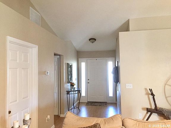 Welcome home to this adorable 3 bedroom 2 bathroom home located behind High Springs Community School. Open floor plan with vaulted ceilings. Spacious living room. Efficient kitchen with newer stainless appliances, Tiled back splash ,bar top for extra eating space. Laminate flooring in the great room. New HVAC unit. Perfect sizable master bedroom will accommodate a king size bed and extra furniture.Over sized tiled walk in master shower. Enormous double vanity with drawers. French doors lead to the relaxing back porch. Spend the chilly nights sitting by the fire pit in the large fenced in back yard. Great location in High Springs. Convenient to I-75 or Hwy 441. Easy commute to Gainesville or Lake City.