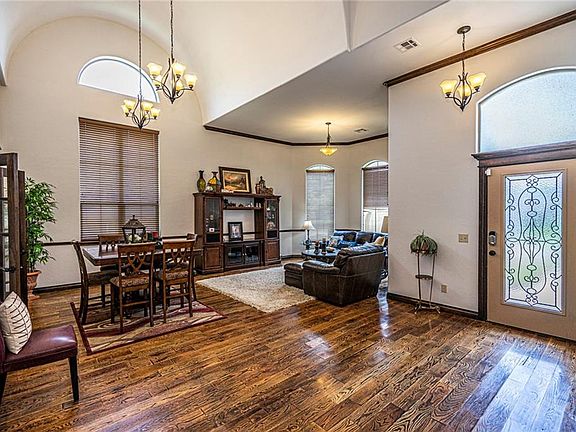 Huge downstairs master suite with private living area and this home is built for daily living and entertaining with an open concept living floor plan. Screen all your favorite movies in your private theatre room on the main floor. So many great details about this home, a stained concrete drive, 4 car garage, outdoor fireplace, Juliet balcony, barrel ceilings, 2nd master suite upstairs, upstairs family room, butlers pantry, in garage floor storm shelter, storage beyond your dreams and more. This home is a must see.