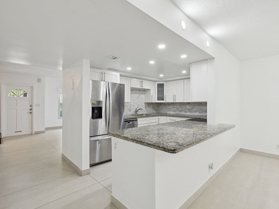 Beautiful very spacious townhome fully renovated. Kitchen with granite countertops and stainless steel appliances wine cooler. New ceramic floors on the first floor and patio. Great community with lots of families. Just minutes away from the beach, Gulfstream and Aventura Mall. Right in between Miami and Broward. Private laundry room in the back of the house. 2 parking spaces. One in the front and one in the back of the house. Water view! The unit currently has 2 bedrooms but can easily be converted into 3.