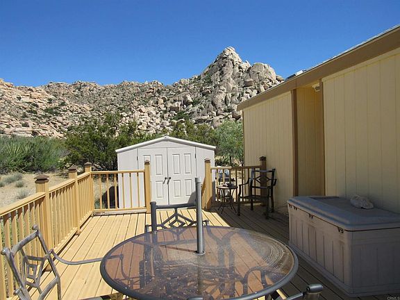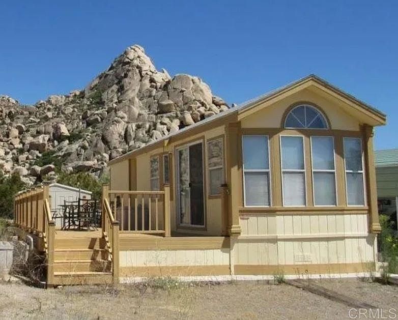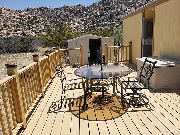 Nature lovers, come live amongst the rocks beneath Temple Peak at De Anza Springs Resort, in the beautiful mountains just 1 hour East of San Diego. Easy, park model living with a huge deck, heavy duty metal shed for storage plus a carport. Sold fully furnished, all you have to do is show up. Take a 5 minute walk to the pools, hot tub and pickleball courts. You will find one indoor pool and one outdoor pool for swimming year-round. Clubhouse includes a Bar and lounge, fitness center & gym, sauna & hot tub. Enjoy your massive deck with a portable fire ring, Bar-B-Q grill and freezer in the shed for food storage. Activities include billiards, darts, karaoke, morning meditation, pickleball and tennis, water aerobics, water volleyball and other seasonal activities. This is undoubtably one of the most beautiful areas for desert hiking. This could be your full time digs or special weekend getaway. Space W-40 is tucked away in a quiet area with no neighbors between you and Temple Peak, away from the club house but just an easy walk to all the fun. Rentals available on site for your weekend guests. Take the short drive to Jacumba Hot Springs Resort and enjoy the healing "magic waters" at the newly remodeled Jacumba Hot Springs Hotel and swim in the hot spring fed lake, free to the public.