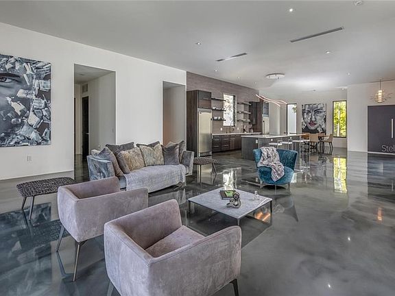 A MILLION DOLLAR HOUSE!! TOTALLY PRIVATE 1 ACRE ESTATE!! Minimalistic house/life made simpler and easier. The spacious floorplan flows so naturally and uninterrupted and features epoxy flooring throughout. Plus, high end kitchen cabinetry with 3/4 inch dovetail, Quartz countertops, ceramic tile backsplash and gorgeous island with breakfast bar. The wine cellar is super nice and unique. Formal open dining room and gigantic great room with the state-of-the-art TV. And the entertainment theater room also featuring state-of-the-art overhead TV projector. The master bedroom is huge and offers a huge designer closet. Electric fireplace in the great room is beautiful but only for show. Also, secondary bedrooms are large and split and inside laundry + washer and dryer. There are 2 separate exterior open patios overlooking the expensive, beautiful bamboo. The windows are hurricane grade glass. The 2.5-ton air-conditioning is easily controlled with the app on your compatible smart phone. 2 ½ car garage plus expensive security front gate entry. The security system includes 8 cameras total surveillance exterior. The word compound might be the right word for this extreme private estate.