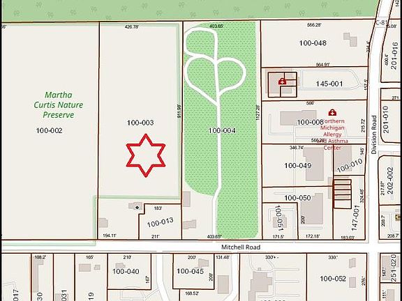 LOCATION LOCATION LOCATION. 9.7+/- acres in Bear Creek Township. Old farm offers so many possibilities. Easily re- zoned to R2. which is consistent with the twp zoning plans. This property has endless opportunities of resd/commercial business possibilities. Located on Mitchell just east of downtown and adjacent to the nature preserve and across from many businesses, this property is one of the last parcels available in this prestigious area of endless business opportunities locations. Would also make a great residential development.