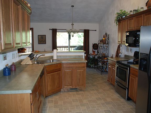 Beautiful Villa conveniently located in the Turtle Creek Subdivision. Nice level driveway. Finished, 9 ft ceilings, walkout basement to patio and wooded lot w/ Full Bathroom, Bedroom w/ walk-in closet, large family room with fireplace, XL 17x25 storage room. Main level features include a vaulted wood floor foyer w/ window. Double doors to the Bedroom/Office off foyer. Vaulted Family Room/Kitchen/Dining Area. Family room w/ gas fireplace Vaulted Ceilings, Ceiling Fan and Can Lighting. Kitchen Also is Vaulted/Can Lights, breakfast bar, Walk-in Pantry and all appliances stay. Large Utility Room on main level as well. Patio doors from the master bedroom and breakfast room to large 10x38 composite wood deck. A portion of the deck, 10x12 is partially covered, so nice! Split Bedrooms. Master suite features a full bathroom w/ walk-in shower, double vanity and walk-in closet. Radon Mitigation System in place. Security System. Wooded Lot. Harmon/Kardon whole House Sound System.