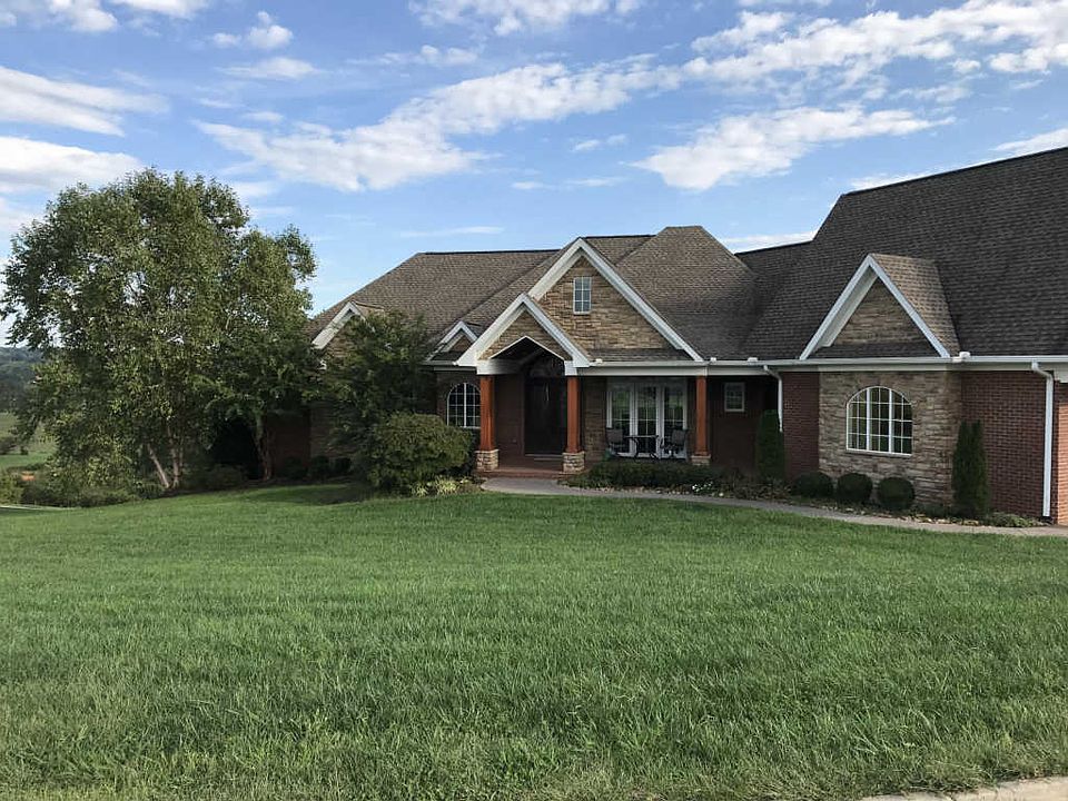 This beautiful custom built home sits on almost 4 acres at the very top of the Wuthering Heights Neighborhood over looking the smoky Mountains. It has a Chefs Kitchen with formal and eat-in dining. The master has a massive his and hers bath with 10 foot walkthrough shower, tub with fireplace and separate private oak staircase leading downstairs to the butler closets. The top floor has 2 bedrooms with attached private full bathrooms and a private living area between them. Main floor has direct garage access, separate maid/service entrance, master, 2 guest bedrooms with bath, 2 laundry rooms, great room and direct access to the huge entertainment deck with bar and gas bbq. Basement has another 2,000+ sqft,14ft of framed ready to finish out space and a golf cart garage or work shop.