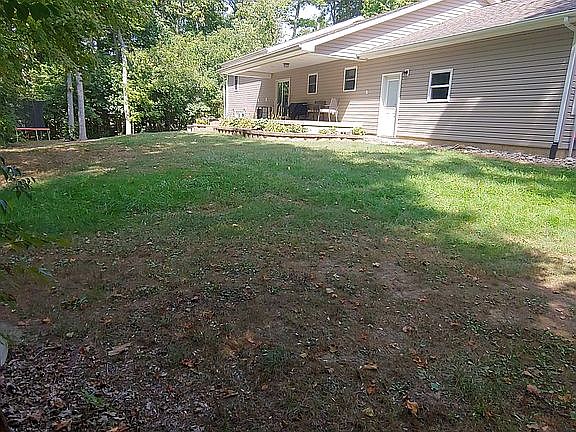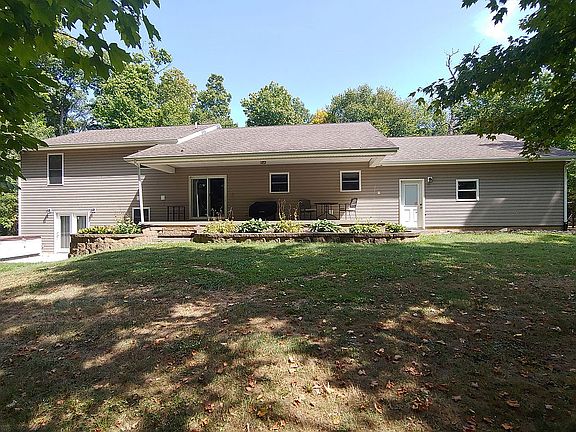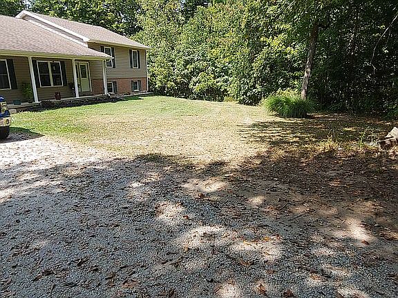 Nestled in a beautiful 3 acre wooded lot, this 3800 square foot Quad Level house has everything you want/need. 4 bedrooms with 3 1/2 bathrooms. There is a bathroom on every level. Could very easily be made into a 6 bedroom house. There are stairway lights on each of the three stair cases, can be left on all the time or they are on a switch to turn on and off an you wish. The Master bedroom is a spacious 14' x 17' area with a walk-out door onto a concrete patio and a huge 13' x 6'8" walk in closet that has hanging area and shelves. The Master Bathroom is 8' x 14' and has a double bowl vanity, water closet, 4' shower with regular shower head and a rain head, and a 6' soaker tub. Also on this level is a Bonus Room that is 12'6" x 25'. Perfect for a TV room, sitting room, toy room, ... many options. Three bedrooms (13' x 14'; 11' x 12'6"; 13' x 12'6") are on the upper level, all with nice size closets (two are walk-ins). There is a 6' x 7' Storage Room on the upper level with hanging on one side and shelves on the other. The upper bathroom is 14' x 6'6" with a nice size storage closet, a double bowl vanity, water closet and tub shower combination. The basement has a bathroom with vanity, shower and water closet. The mechanical room is located down there. There is a 19' x 29' finished area that can be a recreation room or family room. There is a kitchenette area that is 7' x 15' with base cabinets and a sink and a bar that accommodates 4 stools. A storage area that is 6' x 15'. The main floor is comprised of a Living Room, Dining Room and Kitchen (mostly open floor plan). There also is a 10' x 15' office, 6' x 12' Laundry Room and a 1/2 bath with pedestal sink and water closet. The kitchen has an eat at island that will accommodate 4 people, and includes a prep sink. All base cabinets have pull out shelves, even the island cabinets. There are two 3' plus pantries on either side of the refrigerator with shelves. Rope lighting on top of the wall cabinets over the stove area. The attached garage is a large 816 square foot with a walk-out door at the front and the back, a double garage door on the front and a 9' wide garage door on the end towards the back so you can easily fit 3 vehicles in there. The house has a wonderful Central Vacuum System with a garage package. Covered Front Porch is 4’ x 29’. Covered Back Porch is 8’ x 29’.
