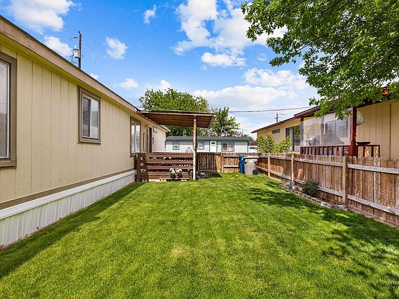 Check out this spacious home in Hampton Park! This exceptional 3 bed/2 bath home has a large great room with open floor plan, covered patio, updated kitchen, formal dining area, large fenced in yard, breakfast bar, vinyl flooring throughout the house and updated bathrooms. Located in a small park with private paved road in West Boise. Lot space rent is $689.00 per month. Buyer must apply through Hampton Park, application fee is $24.00 per person over the age of 18. Contact listing agent for more information regarding park rules and to obtain application.