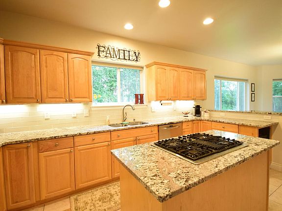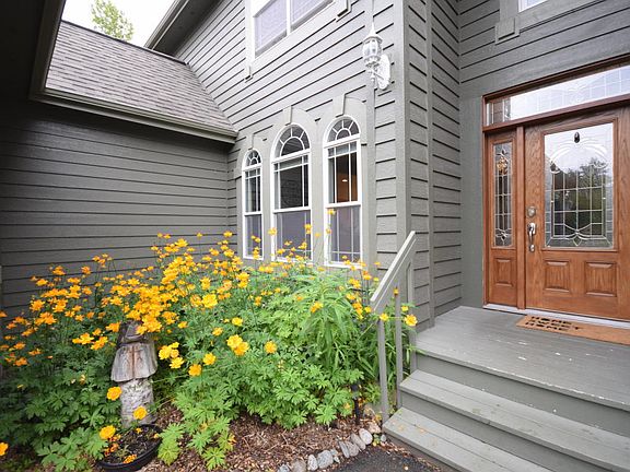 Stunning home on 2.44 acres! Beautiful granite countertops, stainless appliances, island, breakfast bar and large eat in kitchen. Main floor master ste w/gorgeous custom tile, custom glass, jetted tub w/led lighting, concrete countertops, walk-in closet. Tall tray ceilings, marble fireplace w/beautiful mantle and recessed lighting. Deck off living room to enjoy the massive yard! Upstairs landing office area, up a few steps is the family room with a tree top view. Two bedroom that share a jack and jill bathroom w/linen closet. Across the landing is another bedroom with an ensuite full bathroom. Home has newer carpet throughout and tile in the kitchen, laundry room, and half bath off kitchen. Very large storage shed across the the 2 car garage to store your Alaskan toys. Landscaping to include perrenials all over the lot. Its a grand home w/amazing finishes. Don't miss this one!