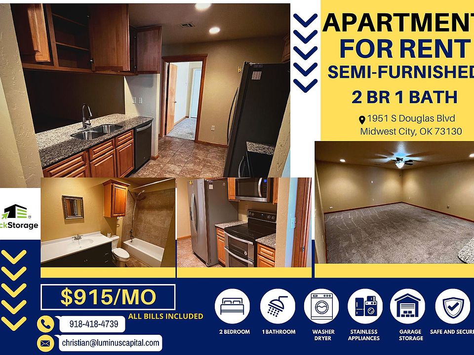 This 800 square foot apartment home has 2 bedrooms and 1.0 bathrooms. This home is located at 1951 S Douglas Blvd #A, Oklahoma City, OK 73130.