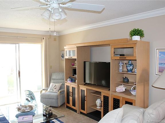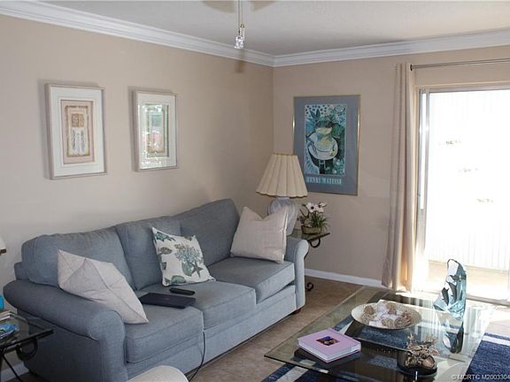 RECENTLY REMODELED, FIRST FLOOR UNIT in Monterey Yacht & Country Club. Move-in Ready! Play unlimited golf (9 hole executive golf course) this is an active 55+ community. Walk a few steps to the clubhouse, heated pool, library, bocce ball, exercise room, shuffleboard, and a second clubhouse on the St. Lucie River with a fishing dock. Newer A/C unit and SS appliances, just installed nonskid 18" tile throughout the condo, new front screen door, Hunter ceiling fans, enclosed back porch, with storage along with a nice view of the garden and putting green. Basic cable and water included in Mtce. Fee. EASY TO SHOW! No pets, Pickup Trucks, RVs, or motorcycles. No leases first three years.