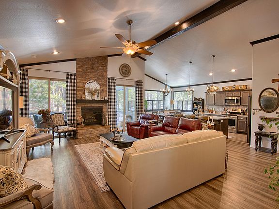 Beautiful 2BR/2BA, 1503 sq ft home in Snow Creek has an open floor plan, custom cabinets, granite counter tops, wood plank style flooring through out, covered deck, natural gas fireplace, A/C, paver driveway w/ turn around, maintenance free siding and a metal roof. 14x14 area under the house for storage.