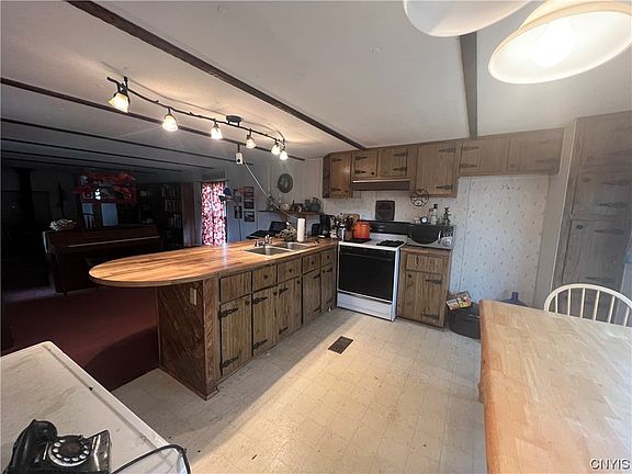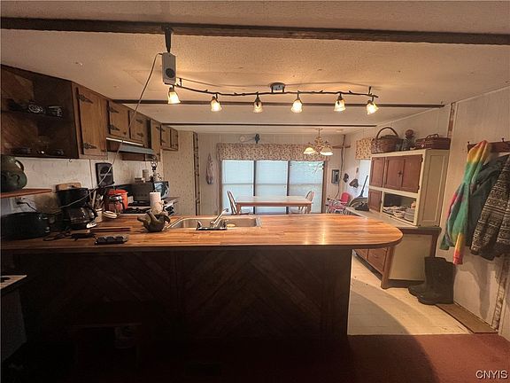 Tremendous privacy on this property. Two-bedroom trailer is being converted to 2-3 bedroom Ranch which is 3/4 completed, just needs to be finished. New metal roof. Bonus buildings include a 24'x48' pole barn with half completed into a work room, studio, etc. and a garage. All on 10.38 acres.