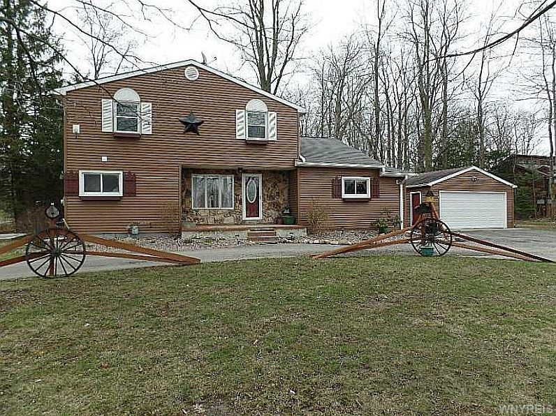 Welcome to 1951 Transit Rd! This home features 2286 sq ft, horse shoe driveway, 2.5 car detached garage, updated 1st floor full bath & 2nd floor bath w/new flooring & extended shower, 1st floor laundry, 1st floor bedroom w/walk in closet, 3 spacious bedrooms on 2nd floor w/ample closet space, 2nd floor 13x12 den/study, living room, kitchen boasts loads of hickory cabinetry, spacious dining room w/slider to deck w/large yard.