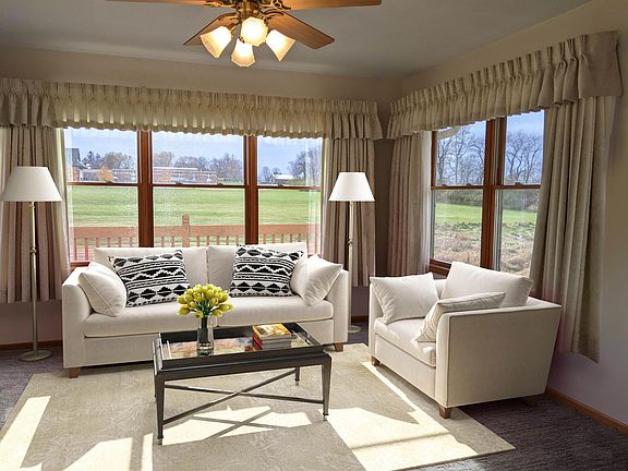 Handicap custom built home with two master suites. First master suite features bathroom with roll in shower and jetted tub plus bonus room for office, sitting or dressing room. Second master suite has double closets and full bath with double vanity. Two additional bedrooms making 4 bedrooms and a 3rd full bath on the main floor. Vaulted open living room with gas log fireplace, french doors to four season room with doors out to huge deck. Kitchen with breakfast bar, pantry, dining area with tons of cabinets and door out to deck. Main floor laundry and mud room with wash sink and additional walk in closet/pantry. Garage is insulated 3 car plus bonus workshop area and ramp. The Southern exposure and daylight in this home make every day bright. Lower level with a large media room and 1/2 bath that is plumbed for a shower, plus huge workshop in the LL as well with 200 amp circuit breakers, sump pump with battery back up, hi efficient gas forced air with april aire and central air. Lot is over half acre and feels even larger with no one behind you. Some furniture virtually staged.